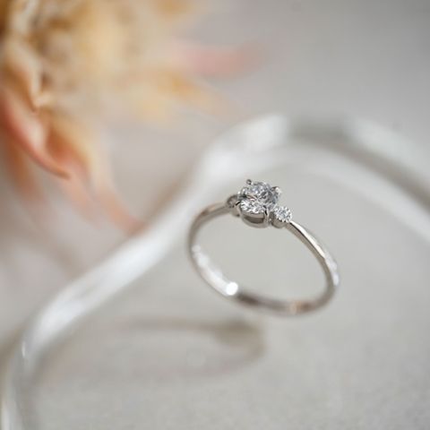 ダイヤのサイズと、ダイヤ固定のツメの位置にこだわりました。ガーベラの通常は指輪に対して並行と垂直に止めるタイプですが、クロスになるように変更して貰えました。メレダイヤも4つ付けられるデザインも選べましたが、細めの指なので主張が強すぎないようにメインのダイヤのサイドに2つにしました。