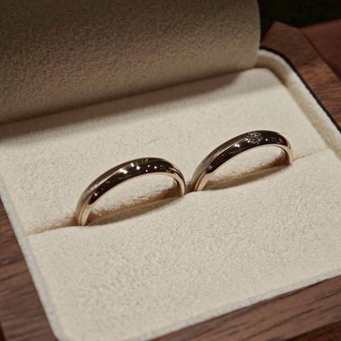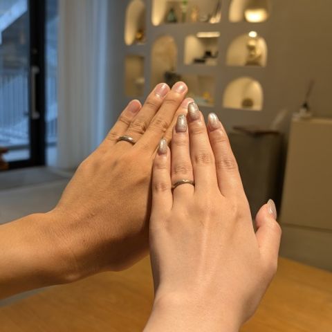 「いかにも」な結婚指輪は避けたいと思っていた私たちにとって、ここの指輪は理想そのものでした。手仕事の温かみが感じられる、少し歪なフォルムがとにかくお洒落。マット加工に仕上げてもらったので、悪目立ちすることなく普段のファッションに自然に溶け込んでくれます。肌馴染みの良いアッシュゴールドの色味も絶妙で、派手さはないのに、ふとした瞬間に手元で静かに存在感を放つところが気に入っています。人とは違う、自分たちらしい指輪を探している方に心からおすすめしたいです。