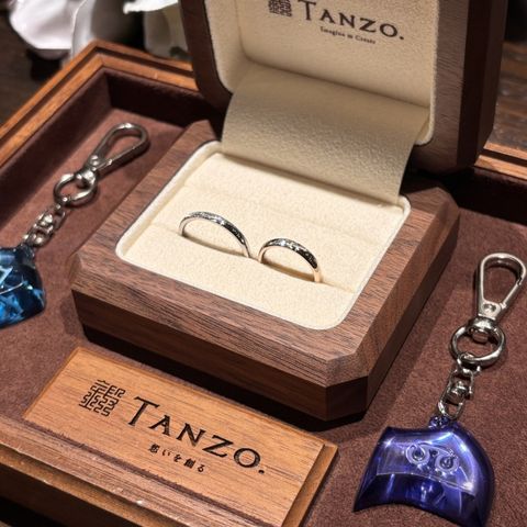 以前、TANZO梅田店で婚約指輪をフルオーダーして頂き、婚約指輪を元に、婚約指輪の時にもオーダーさせて頂いたバングルの継承及び水引きなどご縁と2人の想いが詰まった指輪となりました。見る角度によって、デザインが違ったり、色が違ったり、フルオーダーな指輪だからこそ出来上がりました。