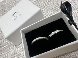 シンプルなデザインだけど、ダイヤモンドがななめに入っていてとても綺麗に見えました。付けた時の印象も良かったです。また、婚約指輪と重ね付けした際も綺麗に美しく見えました。素敵な指輪が多く迷ってしまいました。