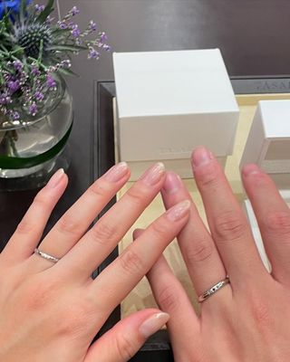 デザインは日常使いできるけど、とにかくキラキラしているものが良くて、上から見ても、下から見てもダイヤが綺麗に見えるこちらに決めました! 指輪に込められた意味もとても素敵で、即決でした! 2人でいつまでも一緒に笑っていたい、改めてそう思わせてくれる指輪です。