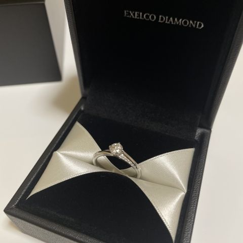 婚約指輪は見つけた時から一目惚れのデザインでした。センターダイヤは浮いているようなセッティングで、その下を細かいメレダイヤが流れるように敷き詰められていて、他にはない唯一無二のデザインに惹かれました。 メレダイヤも最高品質のものを使っているということで、光が当たり輝いたメレダイヤのたくさんの光で、さらにセンターダイヤを輝かせているそうです。 婚約指輪は王道でありながらも何か特別感がほしい、ダイヤモンドの輝きは絶対に、結婚指輪との重ね付けで日常でも着用したい、何よりも身につけていて幸せな気持ちになれるもの、など私の全ての条件を満たしてくれた指輪に出会えました。 今でもリビングの見える所に飾りながら、旅行や記念日などには着用しています。光の下でキラキラさせながらずっと見ていても飽きない、本当に大好きな指輪です!