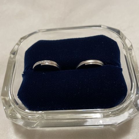 指輪の幅•素材•ダイヤの埋め込み型をそれぞれ選ぶことができるタイプのものにしました。私は少し細身の、主人は幅があるもの、そしてシンプルなデザイン、なおかつ付け心地も考慮し色々探していたところ、こちらを提案して頂きました。