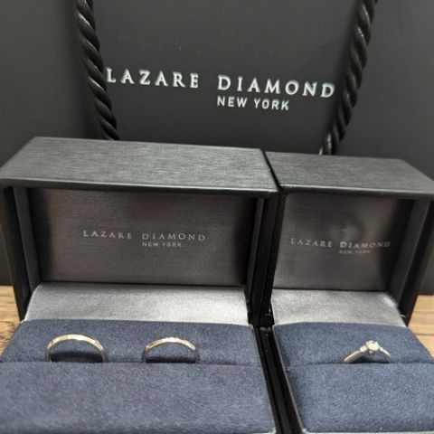 豪華なデザインですが、価格もお手ごろでした。 ラザールダイヤモンドさんは、結婚指輪のペアリングも素敵ですが、男女別々のデザインでも、マッチするデザインが多くあるなぁと思いました。決めては、スタッフさんが最終出してくださったデザインのリングにビビっときました。