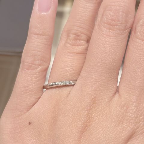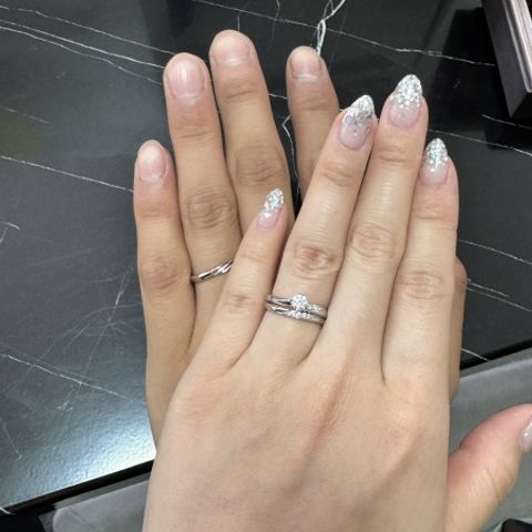 指輪のデザインが指を綺麗にみえる、更に重ねづけを希望している方にはとても満足できる商品でした! ダイヤもこんなに沢山あり求めていた商品に出会うこともできました! 着け心地も、つけてるのも忘れるくらいのリングで驚きました AI診断もあり、それを利用して決める事も出来て満足できました!