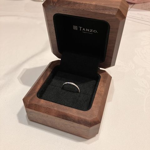 フルエタニティの婚約指輪を購入しました。ダイヤモンドの数が増える分、価格も上がるもので、ブランドによってはビックリするようなお値段でしたが、TANZOさんは手の届く範囲だったので即決することができました。 内側の刻印で漢字を使うことができたので、縦書きで二人の名前と入籍日を入れていただきました。和風な印象になって大正解でした!