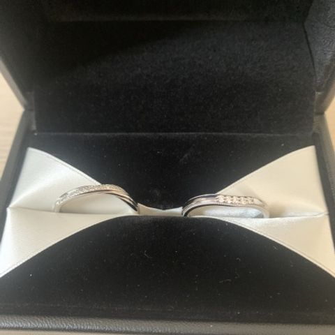 ダイヤモンドが14個入っていて、光に当てたら輝きが増す。ふたつ合わせたら線が繋がり、一体感があるためペアリング感がより強く感じられた。 リングの裏側にストーンを入れられたのも良かった。 人生に一度の買い物としてこだわりとオリジナリティを細かくくわえることが出来た。 満足のいくものを購入できたと実感しています。