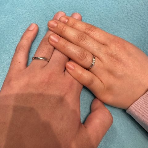 それぞれシンプルで存在感があるところがお気に入りポイントです。店員さんが色々なタイプの指輪を出して下さり、"元々良いなと思っていたデザインよりこっちの方が良い!似合う!"となったので、店員さんには感謝しています。デザイン的に指が長く見える所や付け心地が良くて付けていても全く違和感がない所も気に入っています。 婚約指輪との相性も良く重ね付けすることで更に輝きが増してとても綺麗に見えます!