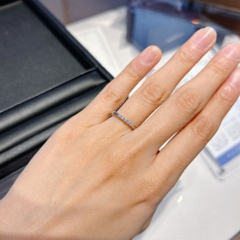 シンプルなデザインでありながらも他のブランドにないようなデザインで、セットリングとしてもとてもいいデザインだったところがとてもいいと思います。 付け心地も特に違和感なく、普段着けていても気にならなと思います。