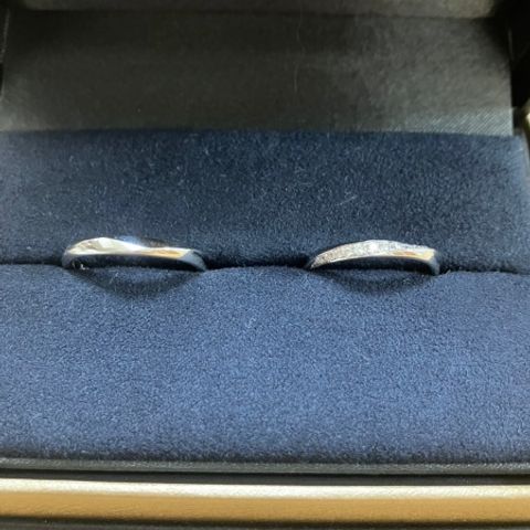 男性の指輪の中でもあまりないデザインを探していた中かっこいいデザインで即決まりました。 女性の指輪は側面にもダイヤモンドがついていてどの角度から見てもダイヤモンドが見えるのがゴージャスで綺麗だったので決めました!