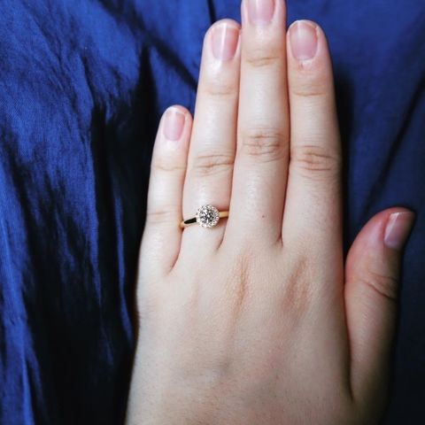 真ん中のダイヤが0.7ctと比較的大きかったため、生えるようにサイドに小さいダイヤが着いているものを選びました。また、シンプルなものも好きなため、dessertのブランドを選びました。とても豪華で品のある指輪に仕上がりました!大切な日やイベントでつけたいです!