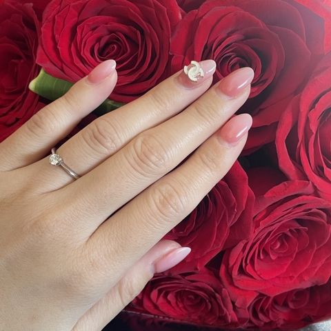 相手の指のサイズや長さなどに合わせ リング形状、ダイヤサイズ、デザインを選びました。 選んだリングには、ピンクダイヤが乗せられており 他との特別感もあります。 シンプルなデザインで とても素敵なものが多かったですが 細めの指にはめた姿を考えた際に こちらの指輪が最適だと選びました。