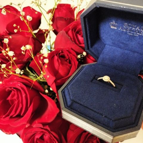 キラキラと光る大きなダイヤがメインになっている、とてもゴージャスな指輪です!もらった私がいうのもなんですが、プロポーズにとてもピッタリだと思います!こ れをもらって嬉しがらないお相手はいないかと!私はピンキーリングにダイヤをつけていただきました!