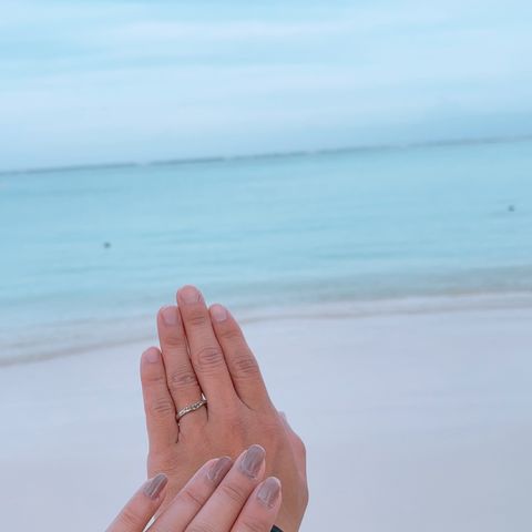 アシンメトリーのデザインが好きなのと、婚約指輪と結婚指輪を重ね付けできるデザインが良かったので、ダイヤモンドシライシのBright Voyageを選びました!結婚指輪がウェーブになっていて、指が長く綺麗に見えます!また、ダイヤモンドが本当ににキラキラしていて、身に付けていると幸せな気持ちになります。