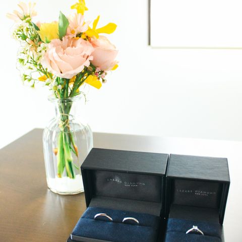 新郎用にはジュリアードPR、新婦用にはベルビューPRを選びました。 各々の好みや付け心地を重視したので、同じ種類の指輪にはしませんでしたが、デザインがシンプルなので一緒に並べても全く違和感ないのがお気に入りです。