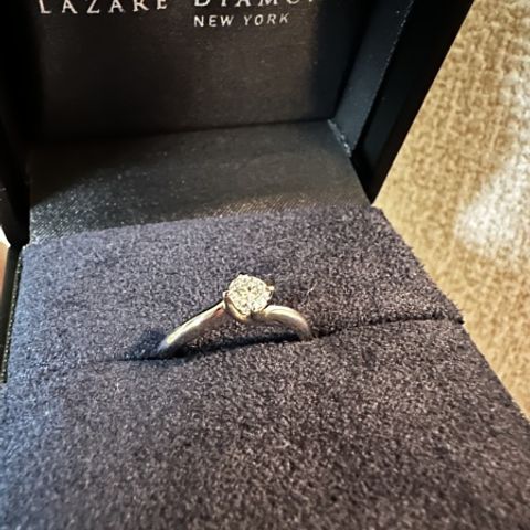 とにかくキラキラで手元を見るだけで笑顔になります! ハーフエタですが、サイドはしっかりダイヤが入っているので、9号でも余裕でフルエタに見えます。 一粒のいわゆる婚約指輪も憧れだったので、エタニティにするか、最後まで本当に迷いました。ソリティアの立て爪にしてしまうと、結局不便でつけないとよく聞きますが、アプローズは中石が少し大きめ、かつ、エタニティタイプなので、いいとこ取りです。 爪がとても小さいので、服を着るときに引っかかるストレスもありません。内甲丸で付け心地もいいです。