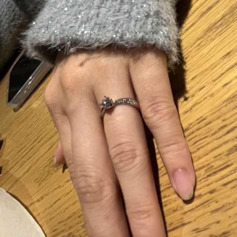 ダイヤモンドが非常に大きく存在感があるなというのが第一印象でした。ダイヤモンドの存在感に比べて価格も良心的でコスパが良いという風に感じました。リングのデザインもダイヤモンドの輝きが1番映えるようにデザインされていて、とても満足です。