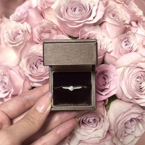 私の性格上、せっかくなら派手なデザインよりもシンプルで毎日つけられる指輪がいいのではないかと彼が私に似合う指輪を探してくれました。この指輪はシンプルだけど綺麗なデザインがとてもお気に入りです。ダイヤモンドもこんなに輝くのかというくらいキラキラしていて見惚れてしまいます。