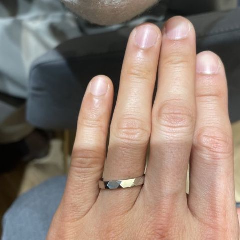 結婚指輪を探し始めて、エクセルコには3回伺って購入しました。2回目までは候補になかった指輪に決めました。特にパートナーが一目惚れで気に入っていました。つけ心地も良いです。ねじれたデザインで男性用は少しつや消しになっているのが良いそうです。