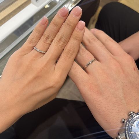結婚指輪を購入しました。結婚指輪は彼とのペアにするか迷いましたが、エタニティリングをつけた瞬間これにしようと決めました!手元がキラキラしているので毎日見るたびに明るい気持ちになります。洗練されたデザインでとても気に入っています。