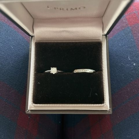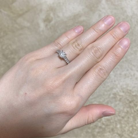 婚約指輪を彼と一緒に見に行きました。何種類も試着して、自分の指に合うデザインが見つけられました。すごく気に入っています。ダイヤモンドがキラキラで着けるたびにテンションが上がります。結婚指輪もセットリングで選びたいと考えています。