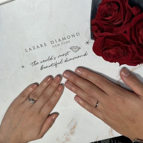 ダイヤモンドとプラチナの輝きが素晴らしいです。カットにこだわっていることもあり、光に反射して実際のカラット数よりも大きく感じます。 複数のブランドを訪れましたが、素人目に見てもラザールのダイヤモンドが最も美しく感じました。