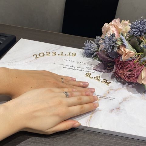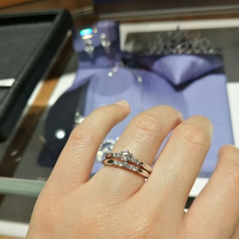 いろんなお店を見て回りましたが、最終的にダイヤの輝きが美しかったので決めました。婚約指輪の方は他店と同じ価格帯で、0.2〜3カラットほど大きいダイヤが購入できました。メンズ用の結婚指輪もさまざまなデザインがあり、夫も納得して指輪を選べたようで大満足です。