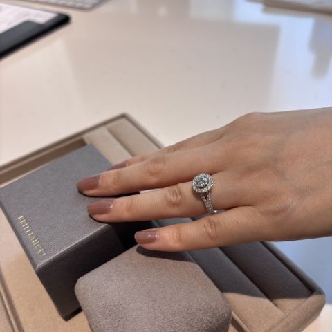ハーフエタニティの婚約指輪を探していて、いくつかのお店を見て回る中で、最終的にこちらで購入しました。 こだわったのはダイヤモンドの「質」。同じ価格帯でも、他の有名ブランドに比べてワンランク上のダイヤモンドを選べる点が決め手でした。スタッフの方が丁寧に説明してくださり、実際に多くのダイヤモンドを見せてくれるので、納得して選ぶことができました。