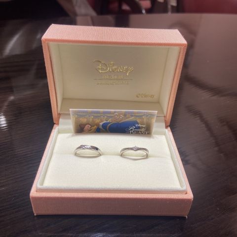 「美女と野獣」舞踏会をイメージされた指輪で、元々ゴールドベースだったものをシルバーにセミオーダーして注文しました。新婦の手が大きく、関節が目立つ指だったので、丸みを帯びたデザインよりもメリハリのある指が長く見えるデザインにしました。ティアラのようなデザインの中にダイヤが埋まっているのが可愛くてこちらに決めました!
