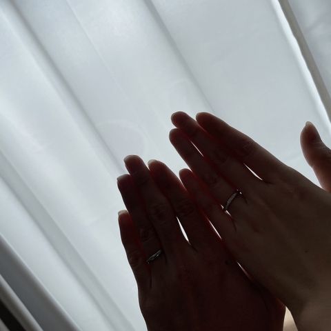 価格はそこまで高くなく、普段から付けていても違和感がないので、本当に手に馴染んでいる気がします。細いフレームなので指が綺麗に見えます。旦那とはセットでは無いですが、それでもペアに見える指輪なので、選んで良かったです。