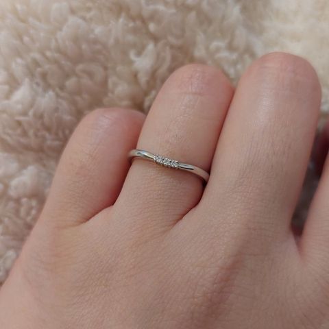 シンプルでありながら、キラキラと輝くダイヤモンドが素敵な指輪です。シーンを選ばず身につけることができて、着け心地もとても良いです。厚さ、太さも絶妙で、 着けていることを忘れてしまうくらいです。手が届きやすい価格帯なところもいいです。