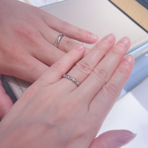着け心地の良さが特によかったです。指に馴染むような付け感があります。女性はハーフエタニティを付けましたが細さもちょうどよく肌馴染みにもよかったです。 ダイヤの留め方にも特徴があり、強度にも安心があります。