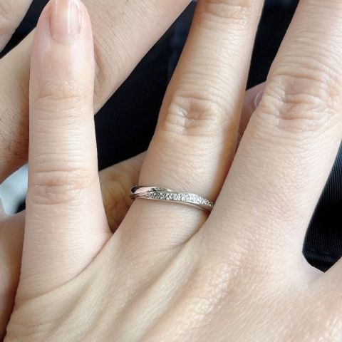 女性と男性の指輪でねじれ方が反転していて、とても可愛いです。 女性側の指輪は、ダイヤもねじれており、指が綺麗に見えます。毎日身につけるものなのでとても気に入ってる点です。付け心地も違和感なく、日常でも問題ないと思います。