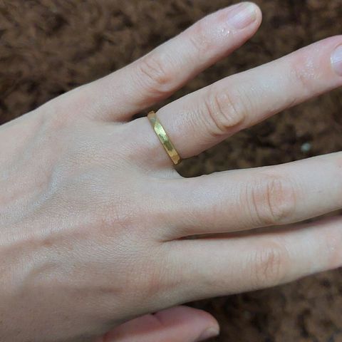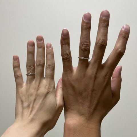 本当にシンプルなデザインを求めていたので、こんなシンプルで細い指輪に出会えて嬉しいです。違和感なく付けることができ、飾らず着用できるのもオススメです。刻印もいい感じに可愛く仕上がり、唯一無二の宝物になりました。
