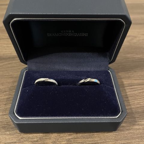 シンプルでマットな質感の指輪を探していました。 色々試着させてもらいましたが、断面の形や色など選択肢が細かく選べるのでお互いがしっくりくるものを選ぶことができました。 一粒ダイヤモンドを入れられたのもとても気に入っています。
