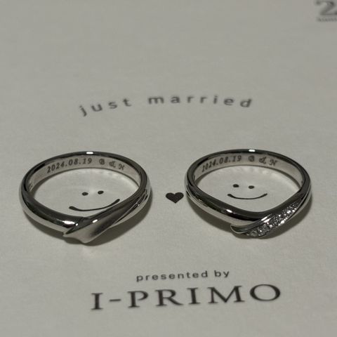 男性の方は高級感溢れるサテン加工(アイプリモでしかできないザラザラのサテン加工)、女性の方は流れるようにあしらわれているダイヤの輝きがとても素敵に感じました。どの角度から見てもダイヤの輝きが見えるのが良いです。