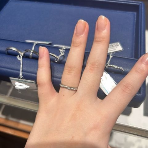 デザインが他の指輪にはない魅力があり、シンプル且つキレイです。SNSで見かけたのがきっかけで、来店しましたがネットで見るより実物の方がより一層気に入りました。 毎日つけるものなので、迷いもありましたがお気に入りの指輪を見つける方ができました。