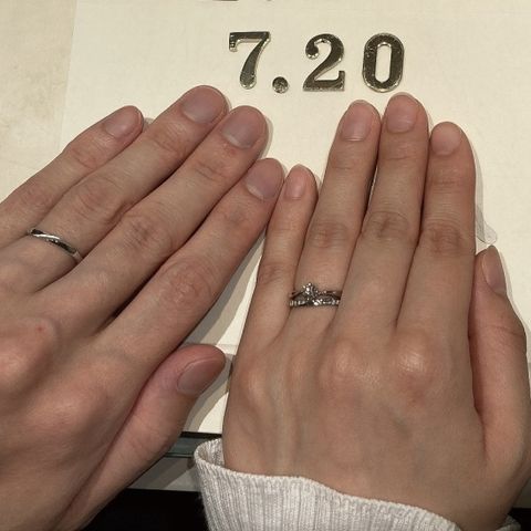 2人ともイルミティのセットでウェーブのデザインのものにしました! ダイヤが沢山ついていてとても可愛いです♡一目惚れでした。購入してからすぐに付けて帰りました。可愛くて、ずっと指を見てしまいます☺️✨大事にします。