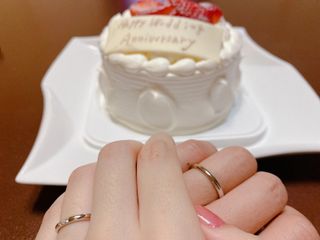 デザインはウェーブ型で丸みがありつけ心地も良くて大変満足してます! 指輪の内側にはイニシャルと日付、誕生石を埋め込んでふたりだけの特別感もあり良いと思う! 金額はお互い15万以内で買うことができ、予定してた相場でこうにゅうすることが出来た!