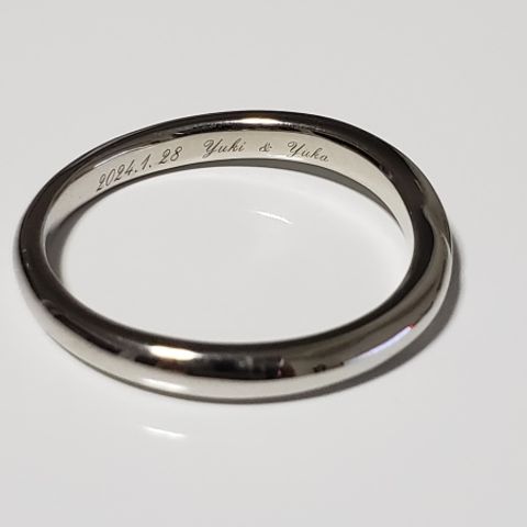 とにかく付け心地が良い。内甲丸で引っ掛かりがないので、つけていても違和感がない。 デザインはシンプルだが、少しキラキラが欲しかったので、思っていた通りのデザインでとても気に入っている。 新郎の方は軽く細めのものを探していたので、こちらも理想通り。