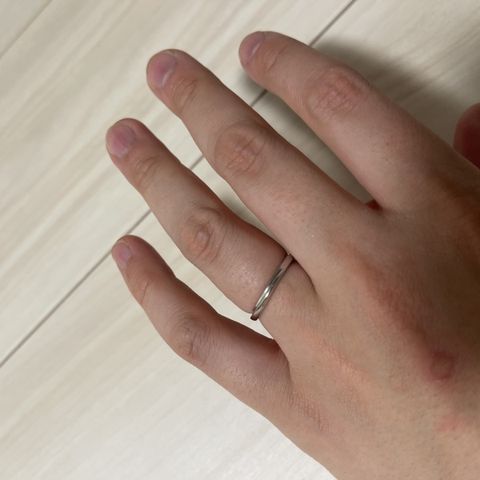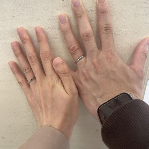 シンプルなものを探していましたが、これが最も希望に近い形でした。女性用のものはダイヤモンドが5石入ったものだったので少し派手な印象になるかなと思いましたが、実際につけてみると全くそのようなことはなく、普段指輪をしない方向けにも受け入れやすいデザインだと思います。