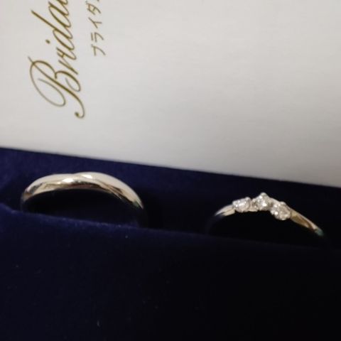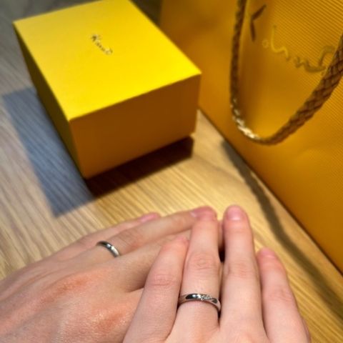 結婚指輪のデザインがどんなのがいいのかまったく分からず来店した私たちでしたが、担当のスタッフが私たちに似合う指輪を診断して下さりました。そしてあっという間に決まり、二人ともビックリでしたが、いいスタッフに巡りあえて感謝です!私たちの好みを取り入れ、ペア感もある結婚指輪にしていただきました。本当にありがとうございます。