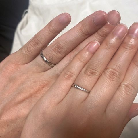 シンプルで長く付けやすいデザインで気に入っています。種類が多く、どの指輪にしようかすごく悩みましたが、つけ心地も良いです。彼女の指輪についても、ダイヤの数やデザインがとても好みで気に入っており、2人ともいい指輪選びができました。