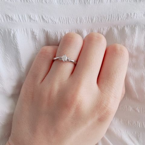つけた時にお互いにいいね!とピンときたので決めました。ティアオブリリーという種類で、リングは太すぎず、主張が強すぎないダイヤが控えめにキラっとしているのがかわいいです。飽きのこないプラチナを選びました。