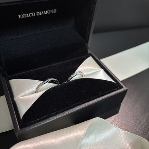 男性側▶︎ブラックダイヤモンドがお気に入りです!エクセルコダイヤモンドの指輪はさりげなくブラックダイヤモンドが入ってるのが多く付けやすい! 女性側▶︎斜めにダイヤモンドが入ってるデザイン!どこにでもあるデザインですがメレダイヤの輝きが良くてエクセルコ一択でした!