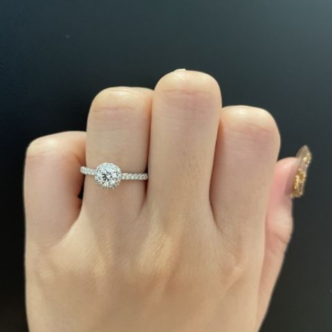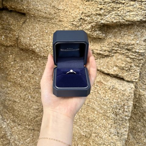いろんなお店を見ましたが、デザインについてはどこも同じようなものがあります。最終的にビビッときたのはダイヤを止める爪の小ささ、着け心地です。普段使いをしたいと言う要望があったため、決め手にしたのはダイヤの高さと引っ掛かり感の少なさです。