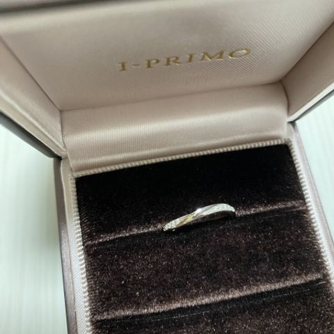 軽くウェーブ状のフォルムに切り立った斜めのラインがあり、中央が窪んでいるデザインが、シンプルでありながらとてもカッコいいです。 他社にも同様のデザインのリングは何種類かありましたが、中央が窪んでいたのは、アイプリモさんだけだったと思います。