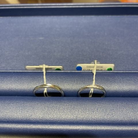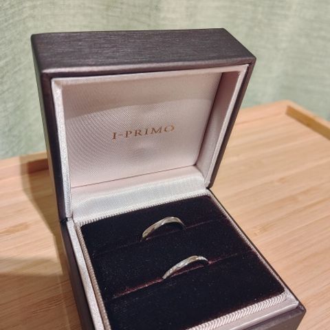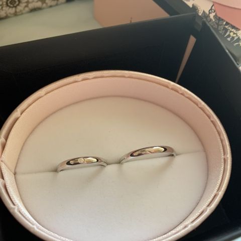 指輪のデザインはダイヤいっぱいのものかすごく迷いましたが、結婚指輪らしい1つダイヤのものに決めました。男性もダイヤ無しは取扱がないため2人でお揃いのものにしました。ダイヤ1つですがかなりキラキラしていて綺麗です。