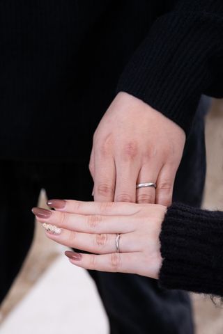指の水かきが大きいのか薬指の間で角度がついており、直線的な指輪を着用すると斜めになってしまうのが気になってました。ウェーブの形の指輪であれば、綺麗に見えるようだったので自分の指に合うかつ新郎の指にも合う指輪を探していたので、購入した指輪が理想通りで嬉しかったです。