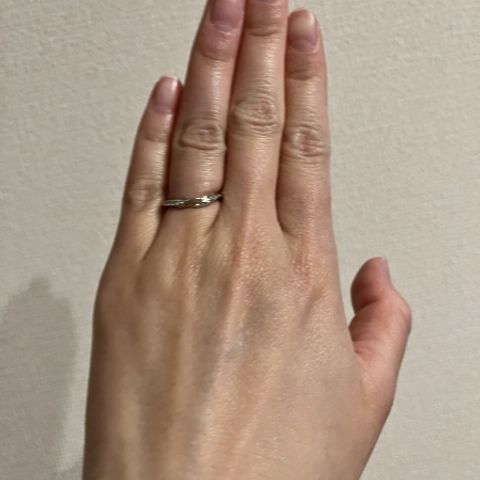 ダイヤモンドがあるけど、ギラギラしすぎずシンプルな輝きで、着け心地も違和感なく馴染みやすい。 元々シンプルな指輪を探してたので、とてもどストライクな指輪を見つけることができました!ダイヤの輝きが綺麗で、婚約指輪をより輝かせてくれるデザインでもあるなと感じました。